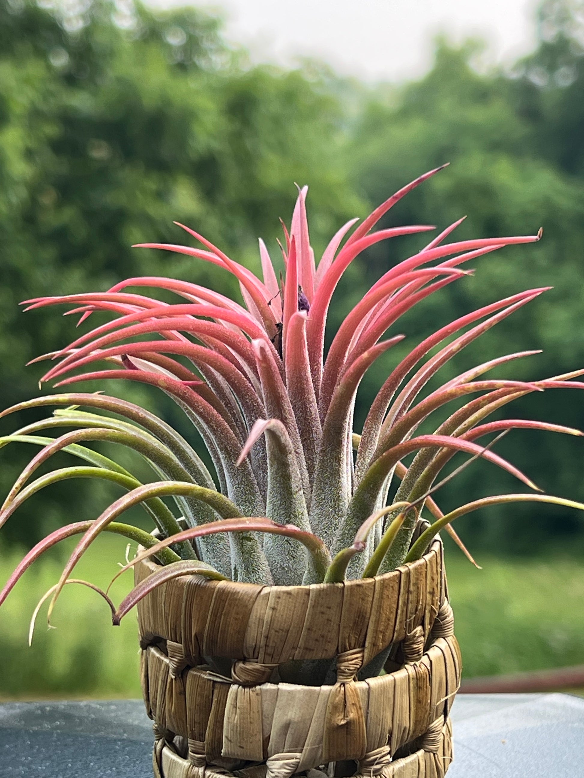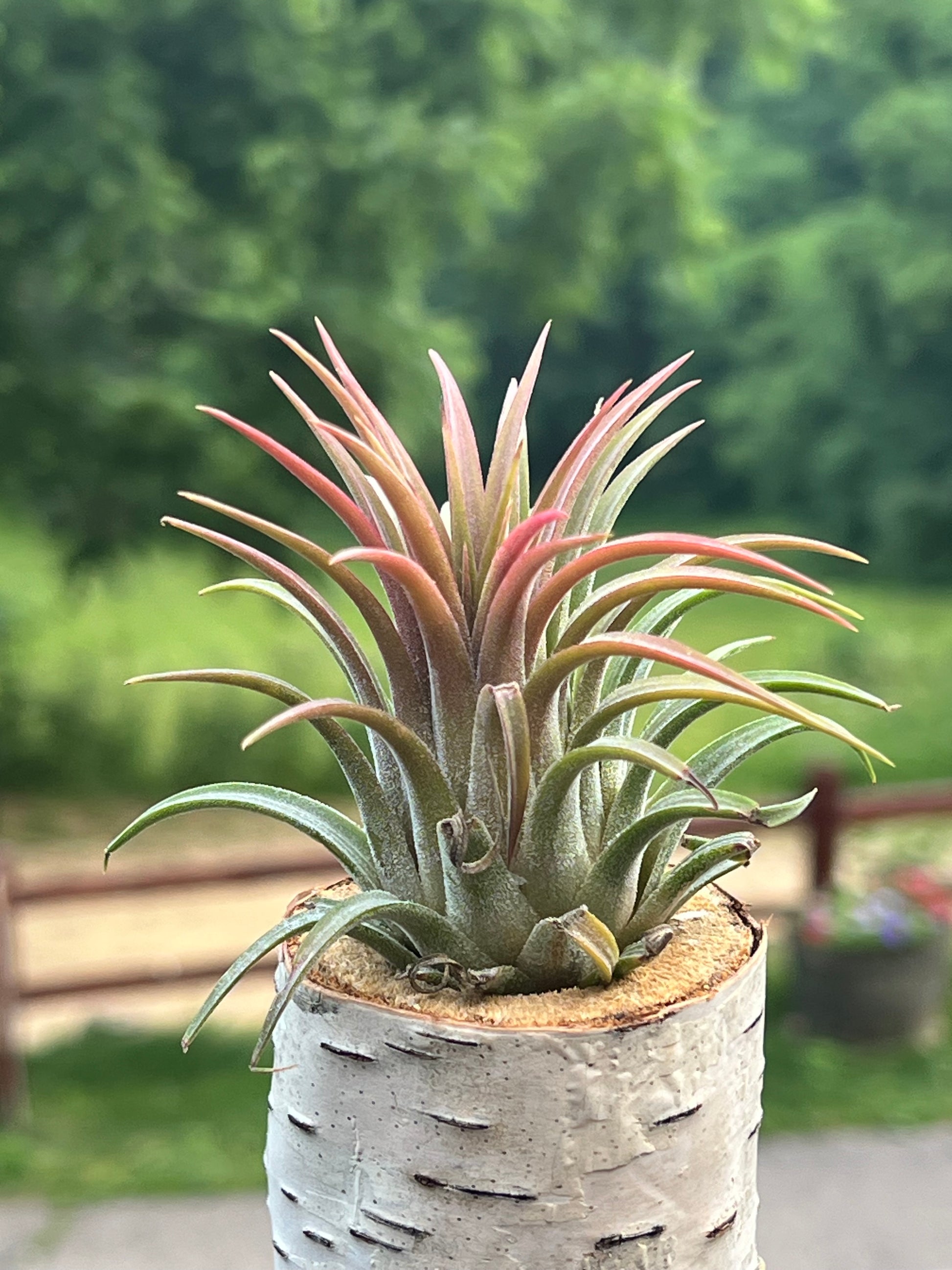 One of the easiest to care for air plants. They blush in red and have a purple flower when in bloom. Plants currently green in color. The picture serves as an example.