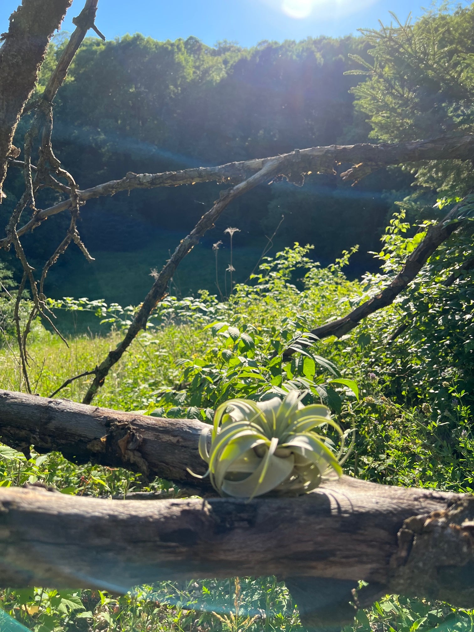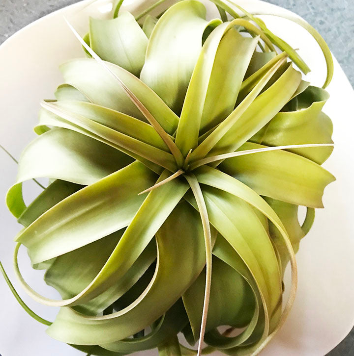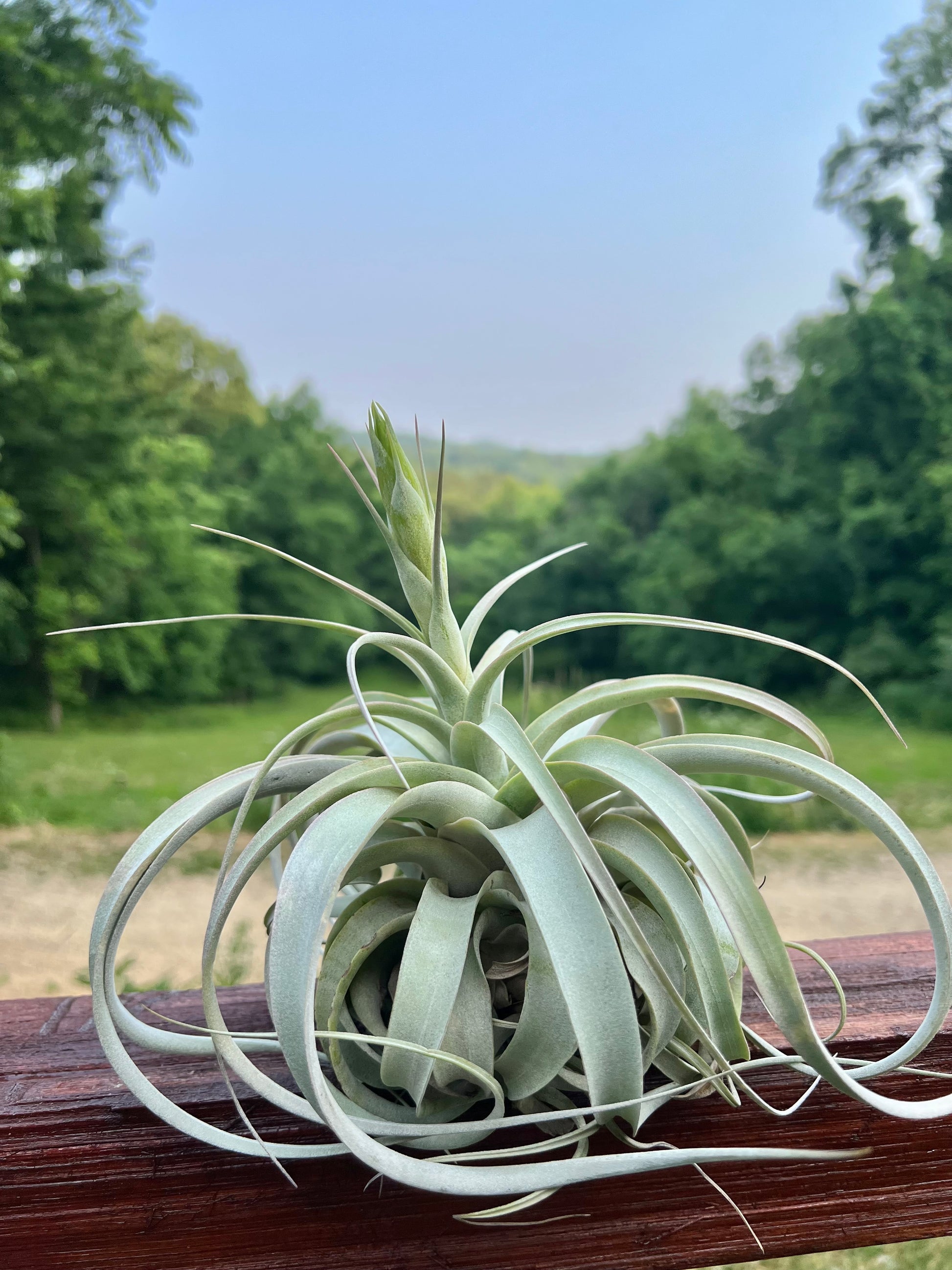 This plant is much larger than the other air plants and has a silver green color. It looks angelic in its beauty with often flowing curly leaves that reach down from Heaven. Currently, plants are not in bloom.