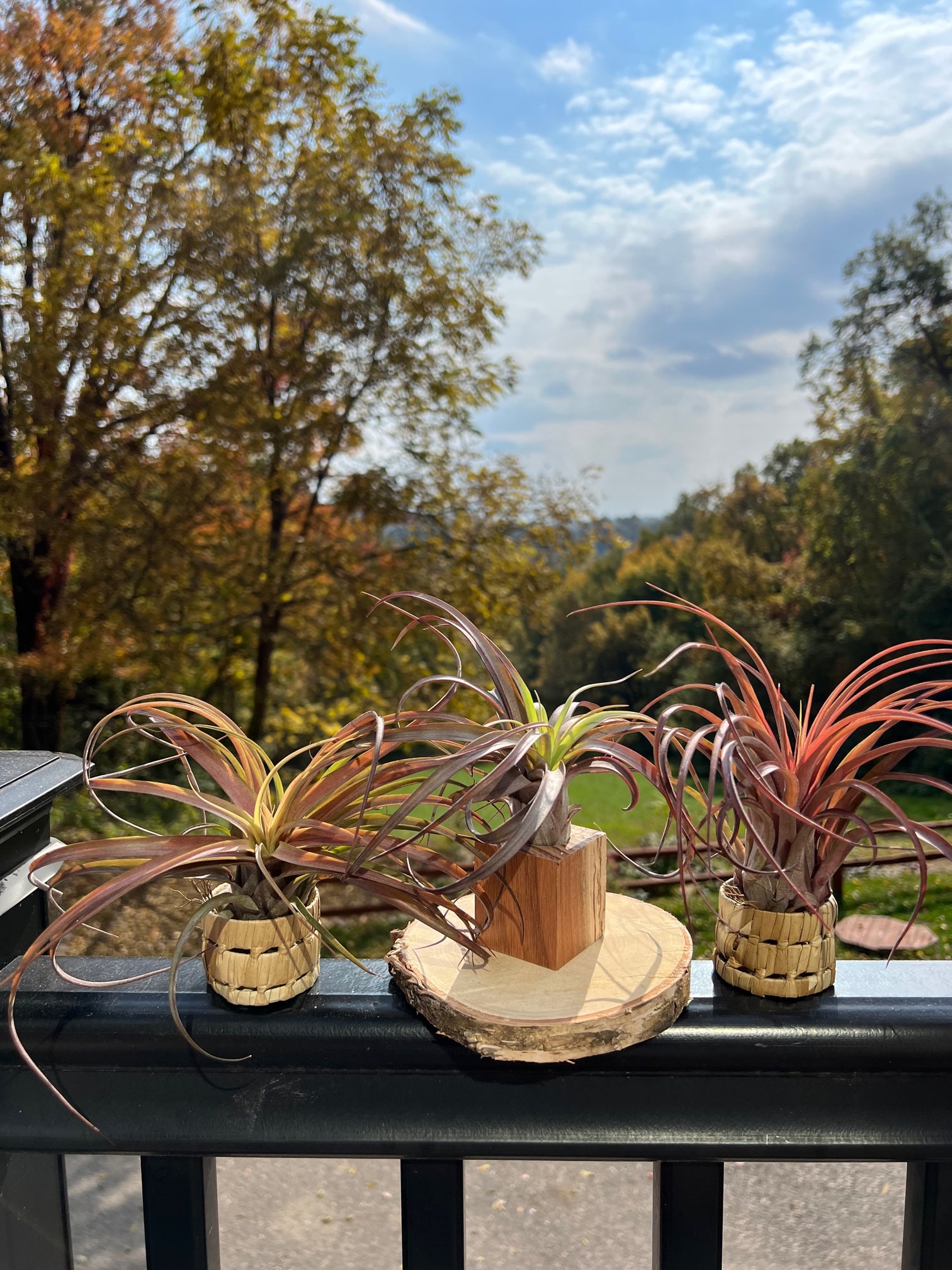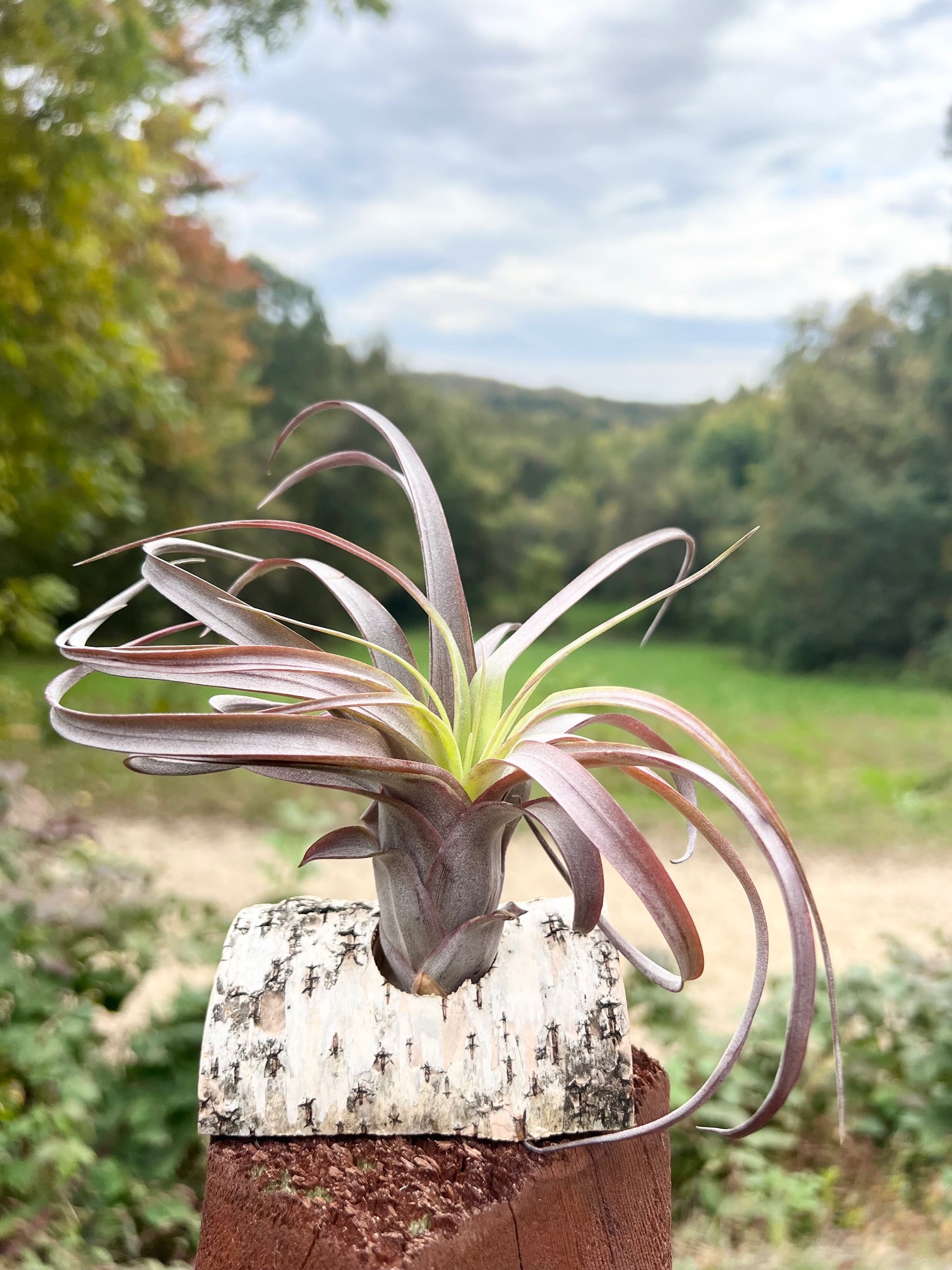The Love Knot is Capitata Red x Streptophylla. Blushes in light purple/red in high light and will go back to green in less light. A very beautiful plant. This plant is rare/limited air plant. We typically only have two at most for sale at any given time.