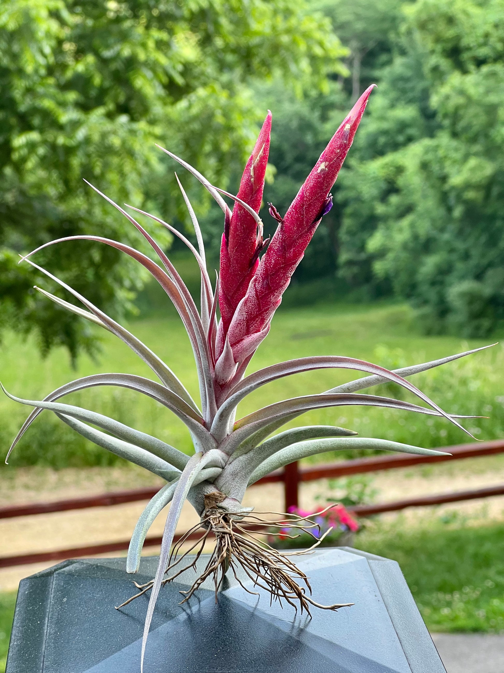 Water upside down weekly or bi-weekly. Let plant dry upside down. Display in location with indirect sunlight.