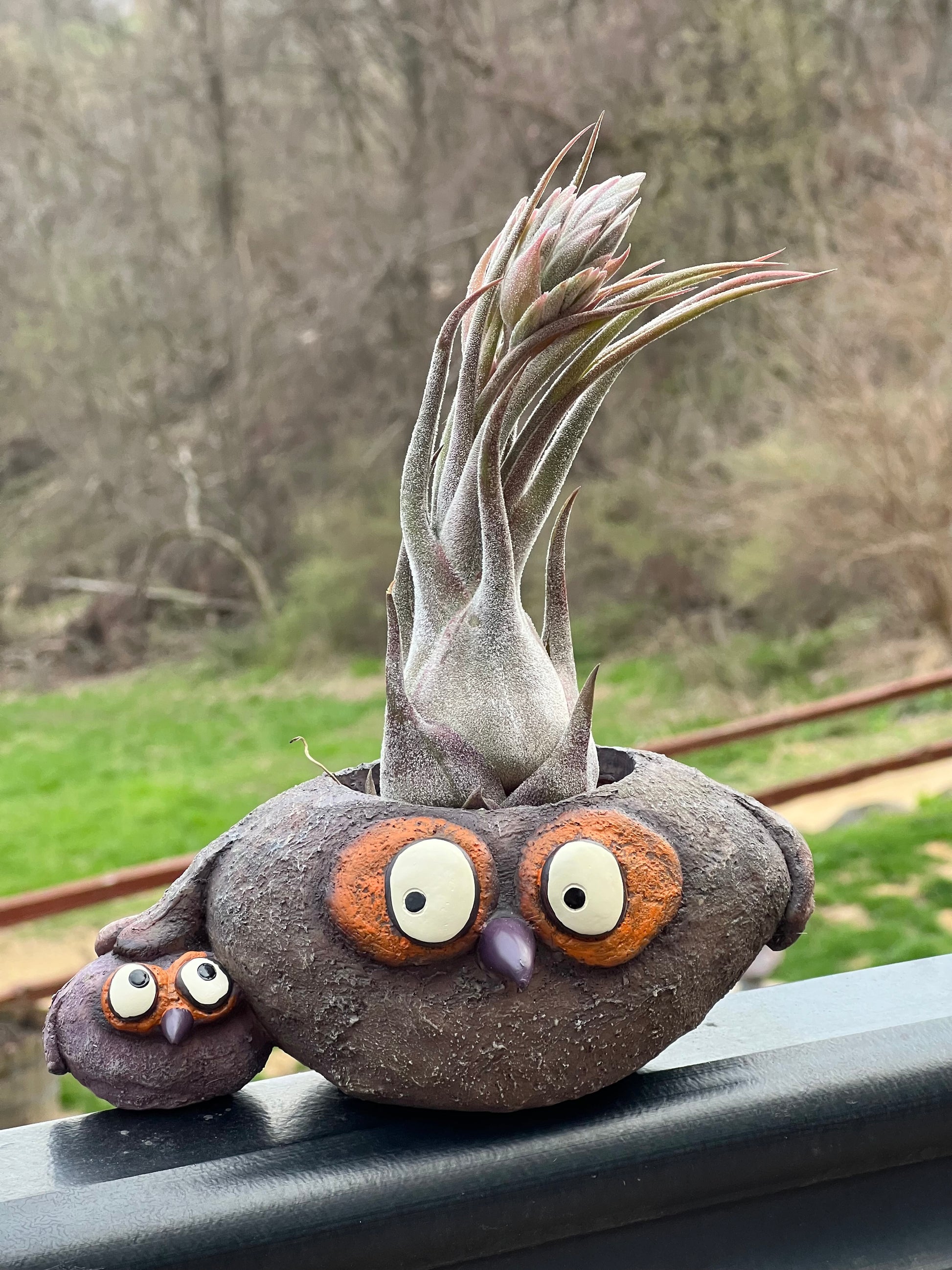 Papaw and Chip Owl Bird Blobhouse Planter With Assorted Air Plant